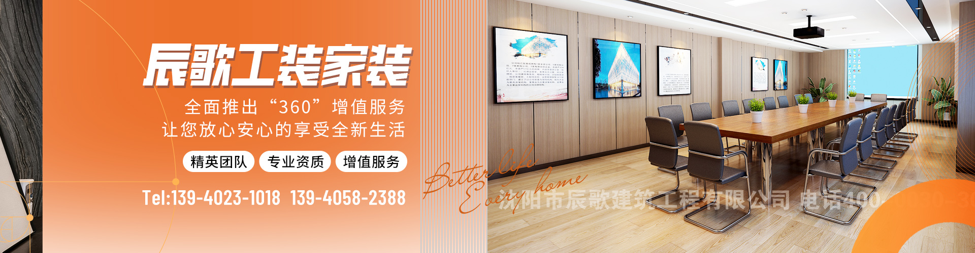 公司创立伊始,注重寻求自然环境与人文环境相融的和谐、空间设计与生活风水的整体协调,坚持以创新的服务意识,将客户的需求与善美服务理念相结合,不断推陈出新让空间释放,使空间不但可以包容亲情、释放温馨,而且修身养性以及凸显个性的地方。我司现在全面推出“360”增值服务,让您放心安心的享受全新生活。沈阳市辰歌建筑装饰工程有限公司以优秀专业人才为基础;以优质的工程质量为保证;以完善的服务体系为依托,公司秉承“诚信、环保、自律、创新”的经营理念。